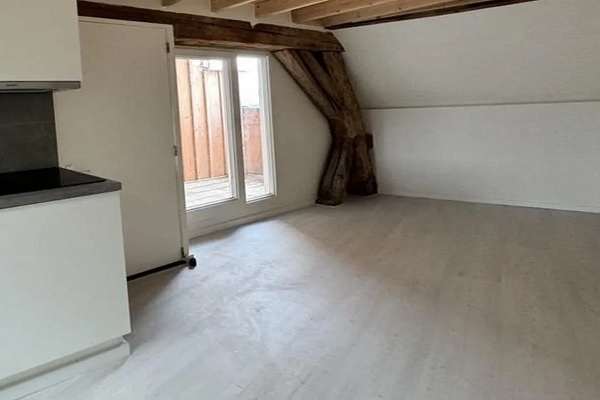 INDELING Ingang voor slechts 3 appartementen. Via het trappenhuis is de eerste verdieping bereikbaar. Voorkant van het appartement bevindt zich de woonkamer en aan de achterkant de keuken met de patio buitenruimte. Tussen de patio en de woonkamer zit de toiletruimte en de wasruimte met de elektrische boiler De keuken is uitgerust met een inductie kookplaat, koelkast met vriesvakje, afzuigkap en voldoende bergruimte. Met de trap is de entresol bereikbaar. Deze is voorzien van een open badkamer met wastafel en douche. Verder is deze ruimte geschikt als slaapkamer. De grote Velux dakramen geven fraai uitzicht en veel daglicht. Tevens is boven de badkamer een opbergruimte voor bijvoorbeeld koffers.