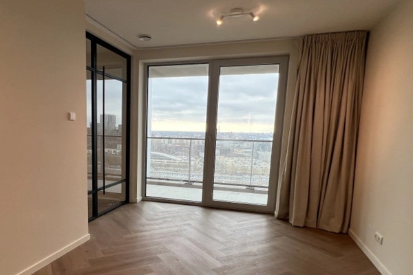Indeling Op de begane grond bevindt zich de entree van het nieuwbouwcomplex. Bij binnenkomst treft u de liften en het bellentableau. U betreedt het appartement via de hal, die toegang biedt tot de woonkamer, het separate toilet en de wasruimte. Het gehele appartement is strak afgewerkt met witte wanden en een fraaie PVC visgraatvloer. De lichte en royale woonkamer profiteert van grote raampartijen en een gunstige ligging, waardoor er de hele dag aangenaam zonlicht binnenvalt. De open keuken is uitgevoerd met houten onderkasten en een natuurstenen aanrechtblad en beschikt over inbouwapparatuur, waaronder een gecombineerde oven/magnetron en vaatwasser. De ingebouwde koelkast en vriezer bevinden zich direct naast de keuken. De ruime slaapkamer beschikt over een en-suite badkamer met dubbele wastafel, inloopdouche, twee spiegels en ingebouwde kastruimte. Daarnaast is er een ruim, separaat toilet met fonteintje en een aparte wasruimte voorzien van een wasmachine, droger en extra opbergkasten.