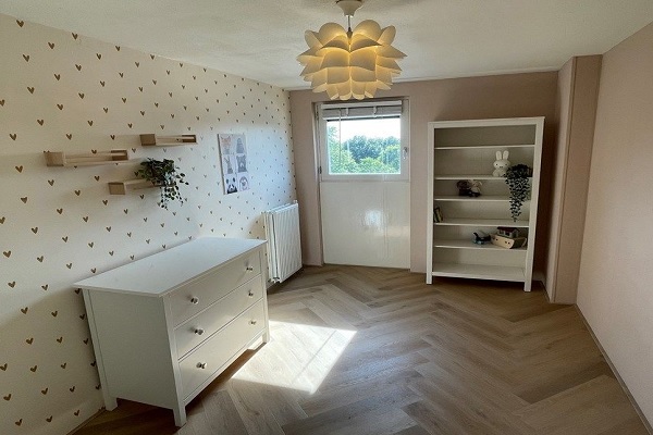 WONINGDELERS TOEGESTAAN! Indeling: Aan de achterzijde bevindt zich de ruime woon-eetkamer (ca. 5.56x5,13 = 28.56m2) met balkon op zuid / west en open keuken (ca. 1.60x3.84 = 7.30m2) met werkblad van 320cm, gas 4 pits kookplaat, vaatwasser, combikoelkast / vriezer, combimagnetron/oven. De ouderslaapkamer (ca. 3.75x3.27 = 12.28m2) bevindt zich aan de voorzijde van de woning met tweepersoonsbed en garderobekast. Vanuit hier is er toegang tot de ruimte waar de wasmachine en droger staat. De tweede slaapkamer (ca. 4.74x2.63 = 12.48m2) grenst aan woonkamer. De badkamer (ca. 2.44x1.81 = 4.44m2) is voorzien van ligbad / douche en een enkele wastafel.