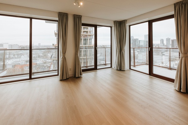 Indeling Via de gezamenlijke entree bereikt u de 14e verdieping waar het appartement is gelegen. Bij binnenkomst komt u in de hal, die toegang biedt tot alle vertrekken. De ruime en lichte woonkamer is voorzien van grote raampartijen en biedt een prachtig uitzicht over de stad. De open keuken sluit naadloos aan op de woonkamer en is uitgerust met moderne inbouwapparatuur. Het appartement beschikt over twee slaapkamers, beide van goed formaat en geschikt als hoofd- en logeer- of werkkamer. De moderne badkamer is strak afgewerkt en voorzien van een inloopdouche en wastafelmeubel. Daarnaast is er een apart toilet en een aparte ruimte voor wasmachine en droger. Het gehele appartement is netjes afgewerkt en gestoffeerd. Geschikt voor een alleenstaande, een stel of een gezin; het appartement is ook ideaal voor twee woningdelers;