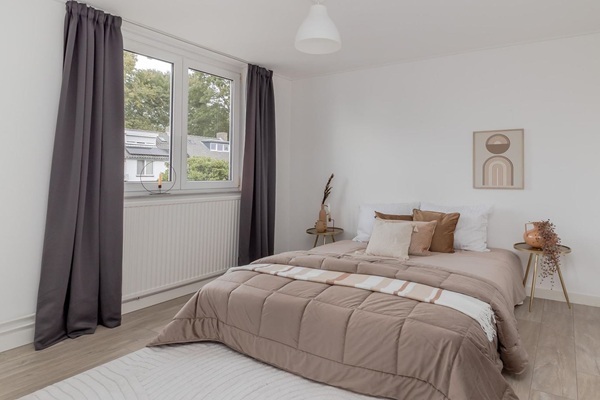 Beschikbaar voor één huishouden Indeling: Via de entree komt u in de hal met meterkast en trappenhuis. Het moderne toilet is stijlvol afgewerkt en voorzien van een wandcloset en fonteintje. De ruime woonkamer is afgewerkt met een fraaie tegelvloer en wordt dankzij de grote raampartijen overspoeld met natuurlijk licht. Aan de achterzijde bevindt zich een uitbouw waarin de luxe keuken is geplaatst. Deze keuken is uitgerust met alle denkbare inbouwapparatuur en biedt directe toegang tot de tuin. De zonnige tuin, gelegen op het noordwesten, is een heerlijke plek om te ontspannen en beschikt over een ruime stenen berging en een praktische overkapping. De overloop biedt toegang tot het tweede toilet, de nette badkamer met wastafel en comfortabele inloopdouche, en twee van de drie slaapkamers. De slaapkamers zijn keurig afgewerkt met een laminaatvloer en voorzien van raamstoffering. De slaapkamer aan de achterzijde beschikt bovendien over een praktische en stijlvolle walk-in closet, wat zorgt voor extra comfort en bergruimte. De overloop biedt plaats voor de wasmachineaansluiting. Het merendeel van de zolder is slim en smaakvol verbouwd, waardoor het uitstekend dienst kan doen als derde slaapkamer, een ideale ruimte voor bijvoorbeeld een tiener, werk- of logeerkamer.