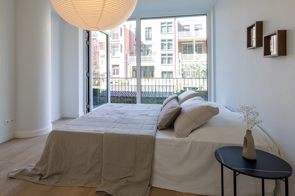 Indeling Gesloten entree met toegang tot het bellentableau, de brievenbussen en de liften. Via de trapopgang of liften bereikt u de bovengelegen verdiepingen. Vanuit de hal is er toegang tot alle vertrekken. In de gang bevindt zich een klein berghok waar wasmachine uitsluiting zit, daarnaast bevindt zich het toilet met fonteintje. De open keuken is voorzien van een vaatwasser, oven, inductieplaat en koelkast. De woonkamer is ruim opgezet en geniet van veel lichtinval dankzij de grote raampartijen en het brede balkon aan de achterzijde. Via schuifdeuren is het balkon te betreden. Aansluitend ligt de slaapkamer met tevens toegang tot het brede balkon. De badkamer is voorzien van een wastafel met wastafelmeubel en douche. De woning is niet geschikt voor woningdelers