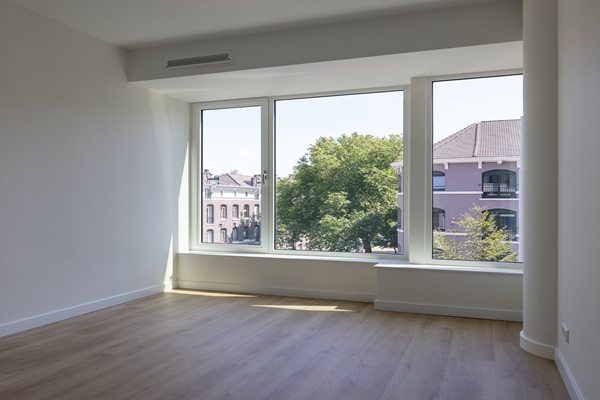 Indeling Gesloten entree met toegang tot het bellentableau, de brievenbussen en de liften. Via de trapopgang of liften bereikt u de bovengelegen verdiepingen. Vanuit de hal is er toegang tot alle vertrekken. In de gang bevindt zich een klein berghok waar wasmachine uitsluiting zit, daarnaast bevindt zich het toilet met fonteintje. De open keuken is voorzien van een vaatwasser, oven, inductieplaat en koelkast. De woonkamer is ruim opgezet en geniet van veel lichtinval dankzij de grote raampartijen en het brede balkon aan de achterzijde. Via schuifdeuren is het balkon te betreden. Aan de voorzijde van de woning liggen twee slaapkamers. De badkamer is voorzien van een wastafel met wastafelmeubel en douche. De badkamer is vanuit allebei de slaapkamers toegankelijk. De woning is niet geschikt voor woningdelers