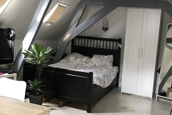 Voor deze zijn we op zoek naar een vrouwelijke studerende kandidaat. Garantstelling is een pré. De betreffende kamer is gesitueerd op de tweede etage van het pand. De kamer zelf beschikt over een eigen keuken en een vide waar je eventueel kan slapen of spullen kan opbergen. De badkamer en het toilet worden gedeeld met de 3 andere huisgenoten.