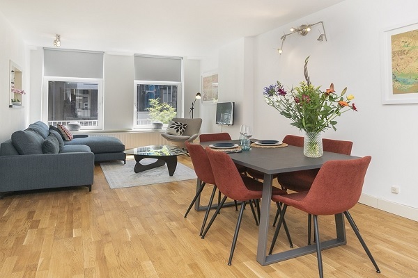 De woonkamer is voorzien van twee banken, een eettafel, een eenpersoons slaapbank voor gasten en een flatscreen-tv. De keuken biedt alle benodigdheden om zelf te koken, waaronder een oven, magnetron, grill, kookplaat, koelkast, vriezer, broodrooster en waterkoker. De slaapkamer garandeert een goede nachtrust in het comfortabele tweepersoonsbed van Swiss Sense, dat de ruimte deelt met nachtkastjes, lampen en stijlvolle kledingkasten. De badkamer is smaakvol ingericht en beschikt over een toilet, wastafel en douche. Het appartement is tevens uitgerust met een snelle internetverbinding en een wasmachine. Kortom, deze accommodatie biedt een stijlvolle uitvalsbasis om de eindeloze charmes van Amsterdam te ontdekken.