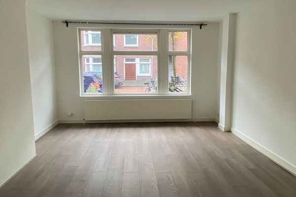 Deze woning is beschikbaar voor maximaal 2 personen zijnde een stel. Geen samenwonende vrienden, vriendinnen, collega's en/of studenten. Indeling: Woon/eetkamer ensuite voorzijde ca. 3.57m x 5.18m, achterzijde ca. 5.4m x 3.35m; vaste vasten en suiteseparatie aanwezig; Keurige keuken ca. 3.2m x 1.74m met kunststof aanrecht ent onder- en bovenkasten, alsmede inbouwapparatuur bestaande uit kookplaat, koelkast met vriesvak, vaatwasmachine en afzuigkap. Deur naar achtertuin Achterzij(slaap-)kamer ca. 1.9m x 3.3m; Voorzij(slaap-)kamer ca. 4.26m x 3.22m/1,6m; Toilet/douche combinatie ca. 2.0m x 1.0m; Alle ruimten aan de achterzijde geven toegang tot de achtertuin met houten berging. De achtertuin van ca. 63m2 is in een punt gelegen.