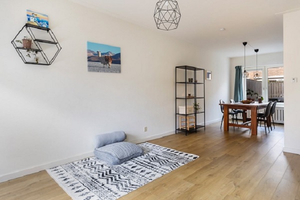 Bij binnenkomst valt direct de royale woonkamer op. Dankzij de grote ramen aan de voorzijde en het open karakter van de ruimte is het hier aangenaam licht. De woonkamer loopt naadloos over in de moderne open keuken, die is uitgerust met diverse inbouwapparatuur, waaronder een vaatwasser, combi oven, koelkast en een 5 pits gasfornuis. Op de begane grond bevindt zich daarnaast een praktische bijkeuken met extra bergruimte, evenals een moderne badkamer voorzien van een inloopdouche, wastafel en toilet. Op de eerste verdieping zijn drie slaapkamers gesitueerd, waarvan één aan de voorzijde en twee aan de achterzijde van de woning. Via een vlizotrap is de ruime zolder bereikbaar, ideaal voor het opbergen van koffers, seizoensspullen of extra voorraad. Geschikt voor een stel of gezin Woningdelen en studenten zijn niet toegestaan