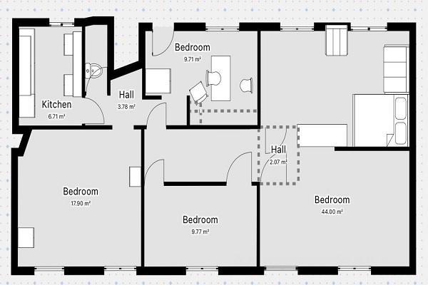 Alleen beschikbaar voor internationale studenten. Indeling Via de gezamenlijke entree bereik je de voordeur naar de trapopgang naar de eerste verdieping, waar de woning zich bevindt. Bij binnenkomst in de woning kom je in de hal, vanwaar er toegang is tot alle vertrekken. De woning beschikt over een ruime woonkamer die door de grote raampartijen prettig licht is. De keuken is praktisch ingericht en voorzien van de benodigde apparatuur, en grenst aan de compacte maar nette badkamer met toilet en douche. In totaal zijn er vier slaapkamers, waardoor er voldoende ruimte is voor bijvoorbeeld een studeerkamer, logeerkamer of kantoor. Daarnaast beschikt de woning over twee balkons, waar je heerlijk buiten kunt zitten en genieten van het uitzicht of de zon. Beschikbaar voor maximaal 2 internationale studenten