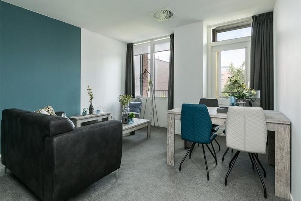 Begane grond: via de begane grond biedt het gebouw toegang tot het. Er bevinden zich parkeerplaatsen welke te huur worden aangeboden aan de huurders en er is ruimte voor een fietsenstalling. Het bevindt zich op de eerste verdieping en is voorzien van een moderne badkamer en een complete keuken. De complete keuken is voorzien van een vaatwasser, combimagnetron, koelkast, kookplaat en afzuigkap. Het gebouw is all-electric wat inhoudt dat er op inductie wordt gekookt. Het is onderhoudsarm en voorzien van een warmtepomp waardoor er verwarmen en koelen mogelijk is zonder radiatoren, zeer energiezuinig!