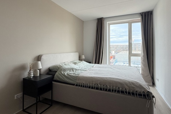 Indeling Deze woning bevind zich op de 5e etage. Je komt binnen in de hal met toegang tot de technische ruimte wat tevens ook als inpandige berging dient.. De woonkamer is voorzien van een moderne keuken die beschikt over inbouwapparatuur, waaronder een inductie kookplaat, combi oven/magnetron, afzuigkap, vries/koelcombinatie en vaatwasmachine. Dit appartement beschikt over een aparte slaapkamer. De badkamer is uitgerust met een wastafel met spiegel en een handdoekradiator. Verder zit er een apart, zwevend toilet nabij de hal. Daarnaast heb je ook nog een een eigen privé buitenruimte!