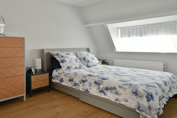 Indeling: Entree/hal, trapopgang met meterkast en garderobe. Overloop, modern hangend toilet met fonteintje, ruime en lichte woonkamer met open haard en openslaande deuren naar het balkon, moderne open keuken voorzien van diverse inbouwapparatuur, te weten: koelkast, vriezer, 6 pits gaskookplaat, rvs afzuigkap, vaatwasser, magnetron en heteluchtoven. Overloop met lichtkoepel waardoor er veel lichtinval is, slaapkamer aan de achterzijde met ingebouwde kastenwand, slaapkamer aan de voorzijde met ingebouwde kastenwand en dakkapel, moderne badkamer voorzien van een inloopdouche met "easy drain", 2e wc, design radiator en badkamermeubel, zijkamer aan de voorzijde, thans in gebruik als werkkamer met dakkapel, aansluiting wasmachine en c.v. opstelling. Niet geschikt voor woningdelers.