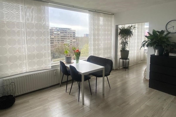 Indeling De centrale entree van het complex is voorzien van een videofooninstallatie en geeft toegang tot de liften en het trappenhuis. Op de eerste verdieping bevindt zich de afsluitbare privéberging. Het appartement zelf is gelegen op de vijfde verdieping Bij binnenkomst kom je in een ruime hal met videofoon en toegang tot alle vertrekken. De royale woonkamer beschikt over veel natuurlijke lichtinval, een strakke laminaatvloer en is voorzien van airconditioning, wat zorgt voor extra comfort. Vanuit de woonkamer is er toegang tot het balkon. De open keuken heeft een eigentijdse uitstraling en is uitgerust met diverse inbouwapparatuur, waardoor koken hier zeer aangenaam is. Daarnaast is er een interne berging/provisieruimte, ideaal voor extra opslag. Het appartement beschikt over een separaat toilet met fonteintje. De luxe badkamer is fraai afgewerkt en voorzien van een ligbad met douche en een modern badkamermeubel met wastafel. De hoofdslaapkamer is afgewerkt met een laminaatvloer en heeft eveneens toegang tot het balkon. De tweede kamer is multifunctioneel te gebruiken als eetkamer, werkruimte of extra slaapkamer en biedt eveneens toegang tot het balkon, dat veel privacy biedt.