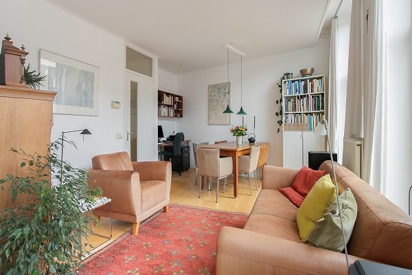 Indeling. Gezamenlijk entree met trapopgang naar de eerste verdieping. Binnenkomst in de hal, van waaruit alle vertrekken bereikbaar zijn. In de hal bevinden zich ook twee inbouwkasten. De woonkamer ligt aan de voorzijde van het appartement en biedt uitzicht op de gezellige winkelstraat, de moderne keuken is voorzien van alle gewenste inbouwapparatuur, de badkamer is voorzien van douche, wastafel, toilet en wasmachine, de slaapkamer bevindt zich aan de achterzijde en biedt toegang tot het ruime dakterras.