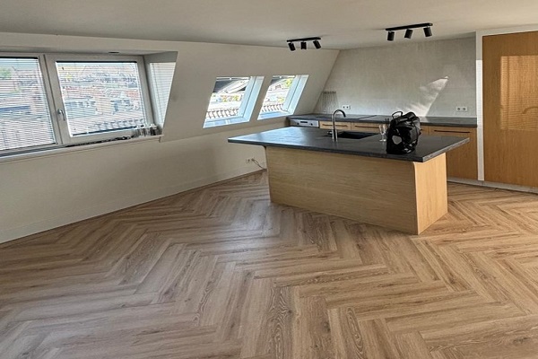 Indeling De entree van het appartement bevindt zich op de tweede verdieping en geeft toegang tot een hal met trap naar de derde verdieping. Vanuit de trap kom je direct in de lichte woonkamer met open keuken. De keuken is voorzien van alle benodigde apparatuur en beschikt over een keukeneiland met spoelbak en extra werkruimte. Vanuit de woonkamer zijn zowel de slaapkamer als de badkamer bereikbaar, welke zich beide aan de voorzijde van het pand bevinden. De badkamer is uitgerust met een douchecabine, wastafelmeubel, wasmachine en droger. De slaapkamer beschikt over een tweepersoonsbed en een ingebouwde kastenwand. Daarnaast bevindt zich in de woonkamer een trap die toegang biedt tot het dak, waar ruimte is voor het realiseren van een privé dakterras, wat een unieke toevoeging is aan deze woning.