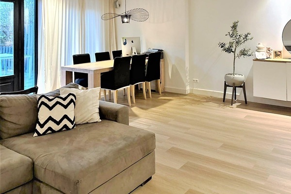 NIET GESCHIKT VOOR WONINGDELERS Indeling Via de entree komt u in de hal met garderoberuimte en een aparte wc. Vanuit de hal is tevens toegang tot een ruime wasruimte met opstelling voor wasmachine en droger. De begane grond beschikt over een zeer brede en royale en lichte woonkamer met een moderne open keuken. De keuken is volledig uitgerust met hoogwaardige inbouwapparatuur, waaronder een oven, aparte stoomoven, twee koelkasten en vriezers. De gehele begane grond is voorzien van vloerverwarming. Het eet- en zitgedeelte kenmerken zich door een open en uitnodigende sfeer, mede dankzij de glazen schuifpui en de lichtstraat. Vanuit de woonkamer heeft u direct toegang tot de fijne achtertuin van circa 45 m², een rustige plek om te ontspannen. Op de eerste verdieping bevinden zich twee ruime slaapkamers, waarvan de slaapkamer aan de voorzijde is voorzien van airconditioning, evenals een aparte inloopkastkamer. De centraal gelegen badkamer is royaal opgezet en beschikt over een inloopdouche, jacuzzi, dubbele wastafel, tweede wc én vloerverwarming, wat bijdraagt aan extra comfort. De tweede verdieping is volledig ingericht als main bedroom. Deze kamer is bijzonder licht dankzij ramen aan zowel de voor- als achterzijde en biedt een prettig en ruimtelijk gevoel.