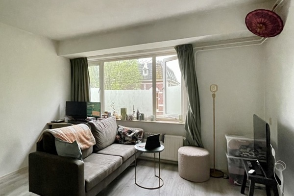 Indeling appartement; Entreehal, voorzien van separaat toilet en meterkast en bergkast. Ruime badkamer voorzien van douche, wastafel en tevens een wasmachine aansluiting. De slaapkamer is circa 7m2. De woonkamer is licht en heeft een half open keuken. Deze is voorzien van eenvoudig keukenblok. Verder heeft dit appartement nog een individuele kelder berging en een gemeenschappelijke fietsenberging. Woningdelers komen helaas voor deze woningen niet in aanmerking.