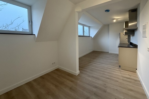 De studio is gelegen op de tweede verdieping aan de voorzijde van het complex. De studio heeft veel lichtinval door de grote ramen. De keuken is voorzien van een koelkast met vriesvak, combi oven, inductie kookplaat, afzuigkap, spoelbak en vaatwasser. De badkamer is voorzien van een douche, wastafel met meubel en toilet. Op de begane grond bevind zich de gezamenlijke fietsenstalling, buitenruimte, wasmachine en droger. Enkel voor studenten.