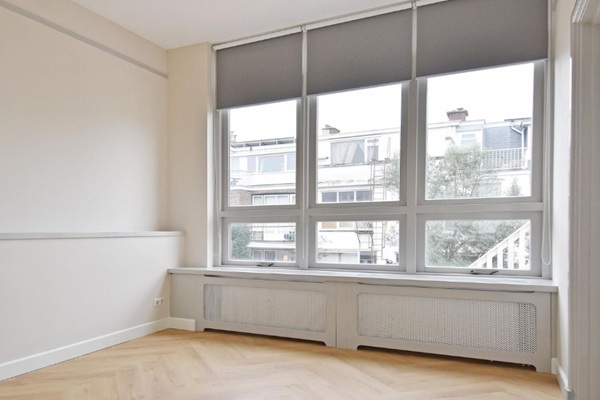 Indeling Gesloten trap naar de 1e etage, entree appartement, schitterende woon-/eetkamer met goede lichtinval dankzij grote ramen. De woon-/eetkamer is voorzien van een fraaie PVC-visgraatvloer met isolatie. Alle wanden en plafonds zijn strak en glad gestuukt. Luxe open keuken voorzien van Siemens inbouwapparatuur. Schitterend dakterras, zeer zonnig gelegen aan de achterzijde van het pand. Vanuit de woon-/eetkamer toegang tot de ruime slaapkamer aan de achterzijde, voorzien van een eigen inbouwkast. Luxe badkamer met toilet, handdoekenradiator, ruime inloopdouche, luxe wastafelmeubel en aansluitingen voor wasmachine en droger. Tweede slaapkamer aan de voorzijde, uitstekend te gebruiken als logeerkamer of thuiskantoor.