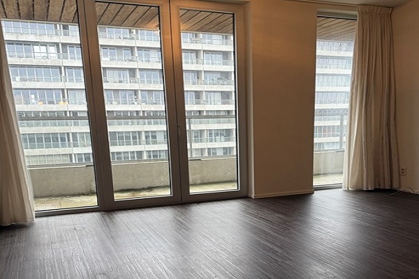Entree met bergkast, toiletruimte, installatie- wasruimte en toegang tot de woonkamer. De toiletruimte is voorzien van een hangcloset en hoekfonteintje. De hal, woonkamer en open keuken zijn fraai afgewerkt met een PVC vloer (houtlook), gespachtelde wanden en een spuitwerk plafond. De keuken is voorzien van een recht opgesteld keukenblok tegen de wand met een keramische kookplaat, combimagnetron, rvs recirculatiekap, koelkast, vaatwasser en spoelbak. Daarnaast is er een groot vast eiland met opbergruimte en 4 zitplaatsen. Een eettafel is dus niet meer nodig. De gevelzijde bestaat grotendeels uit hoge ramen waarin 2 deuren naar het balkon. Vanuit de woonkamer is de toegang tot de slaapkamer. De slaapkamer is eveneens afgewerkt met een houtlook PVC vloer, gespachtelde wanden en een gespoten plafond. Ook deze ruimte grenst aan het balkon met een hoog raam en een deur. Vanuit de slaapkamer is de badkamer toegankelijk. Deze ruimte heeft een tegelvloer, geheel betegelde wanden en een spuitwerkplafond. Er is een grote vaste wastafel aanwezig met spiegelkast en een grote douchecabine. De was- installatieruimte, bereikbaar vanuit de hal entree heeft 2 deuren waarachter de unit van het gebalanceerde ventilatiesysteem welke is voorzien van HR warmteterugwinning en de aansluitingen voor de wasapparatuur te vinden zijn. Aan de buitenzijde treft men het bellentableau en de brievenbussen. Binnen is het trappenhuis, de lift en de toegang tot de fietsenstalling. Op -1 treft men de parkeergarage met de eigen parkeerplaats. Het overdekte balkon ligt op het westen en heeft een oppervlak van 10 m².