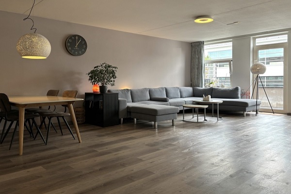 Indeling: Ontvangsthal met video-/intercominstallatie, brievenbussen en toegang tot lift en trappenhuis. Zeer ruime hal met een fraaie laminaatvloer, garderobe, modern volledig betegeld toilet met fonteintje, bergkast, meterkast met stadsverwarming en video-/intercominstallatie. Ruime en lichte woonkamer met toegang tot het brede balkon, waar u kunt genieten van een prachtig ver uitzicht. De woonkamer staat in open verbinding met de moderne, luxe keuken. De keuken is voorzien van hoogwaardige inbouwapparatuur: vaatwasser, combimagnetron/oven, koelkast, afzuigkap, inductiekookplaat en voldoende kastruimte. Aansluitend bevindt zich een praktische berging met wasmachine en droger. Ruime ouderslaapkamer met vaste kledingkast en toegang tot het balkon. Tweede slaapkamer, die naar eigen wens kan worden ingericht als slaapkamer of kantoorruimte. Moderne, geheel betegelde badkamer met bad/douchecombinatie en een vaste dubbele wastafel met wastafelmeubel. Het appartement beschikt over een eigen parkeerplaats en berging in de kelder.