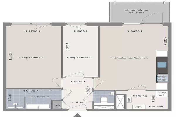 Het appartement beschikt over twee goed bemeten slaapkamers die flexibel te gebruiken zijn als slaap-, werk- of logeerkamer. De badkamer is functioneel ingericht en voorzien van een ligbad en wastafel. Het separate toilet bevindt zich naast de entree. Daarnaast is er een interne berging met ruimte voor de wasmachine en droger, wat bijdraagt aan het dagelijkse wooncomfort. De ligging is gunstig met voorzieningen, openbaar vervoer en uitvalswegen in de directe omgeving. De rustige opzet van het pad en de praktische indeling maken deze woning geschikt voor diverse doelgroepen die op zoek zijn naar comfortabel en efficiënt wonen.