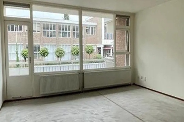 INDELING Souterrain: Gezamenlijke fietsenberging en individuele privé berging. Begane grond: Centrale hal met postkasten en bellentableau. Hal met liftinstallatie en trappenhuis. 2de verdieping Entree/hal geeft toegang tot alle woonruimten. Slaapkamer (3.00 x 4.20) gelegen aan de galerijkant. Betegelde badkamer (1.86 x 2.10) met douche, toilet, wastafel en wasmachine aansluiting. Woonkamer (5.70 x 6.50 ) met toegang tot het ruime balkon. Open keuken (2.20 x 2.40) met eenvoudig keukenblok. Vanuit keuken bereikbare berging met standplaats van de cv-installatie