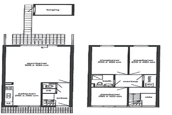 Indeling Via de entree kom je in de hal met meterkast en toilet. Aan de voorzijde van de woning bevindt zich de eetkeuken, praktisch ingericht en met prettig zicht op de straat. De keuken staat in open verbinding met de ruime woonkamer, die dankzij de grote raampartijen heerlijk licht is. Vanuit de woonkamer is er directe toegang tot het terras en de diepe achtertuin, waar je in alle rust kunt genieten van het buitenleven. Achter in de tuin staat een vrijstaande berging, ideaal voor fietsen en tuinspullen. Op de eerste verdieping bevinden zich drie slaapkamers van goed formaat. De badkamer is voorzien van een douche, vaste wastafel en tweede toilet. Daarnaast is er een praktische overloop met extra bergruimte en een aparte wasruimte.