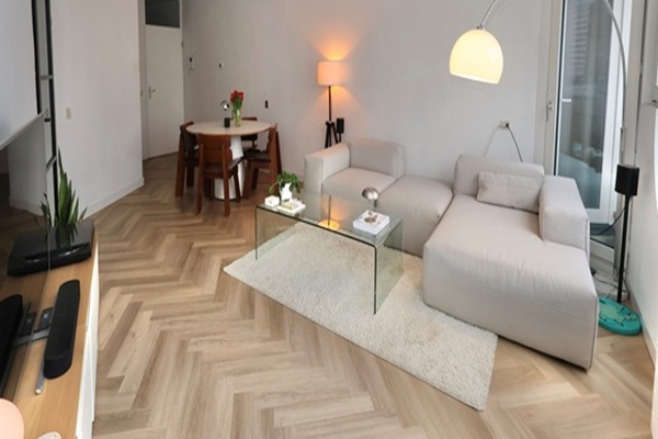 Indeling Toegang via de beveiligde lobby met trappenhuis en dubbele lift. 8e verdieping: gedeelde hal met toegang tot het appartement. De lichte en ruime woonkamer (ca. 28 m²) heeft een open keuken en biedt directe toegang tot het balkon op het zuiden (ca. 3 m²). Het balkon is zowel vanuit de woonkamer als vanuit de hoofdslaapkamer bereikbaar.