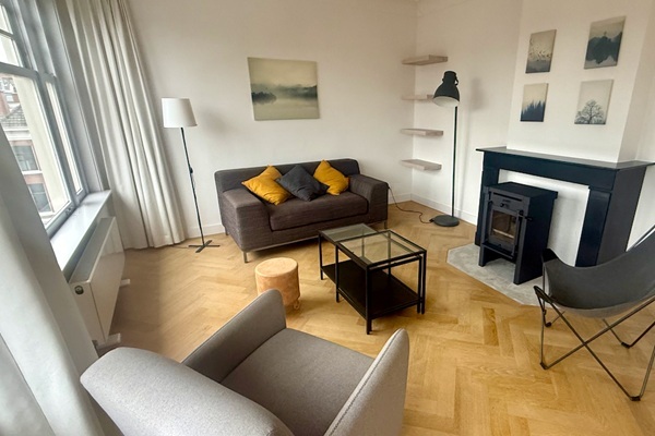 Indeling Entree vanaf de straat met gedeelde hal met brievenbussen. Trap naar de derde verdieping met toegang tot het appartement. Hal met deuren naar de ruime woonkamer met veel ramen met uitzicht op de Vondelstraat, een grote eettafel, gezellig woongedeelte met originele en werkende open haard en nog een zitgedeelte om heerlijk te ontspannen. Recent vernieuwde en moderne keuken voorzien van inbouwapparatuur zoals een vaatwasser, industrieel gasfornuis met oven, koel/vriescombinatie, spoelbak en openslaande deuren naar het balkon. De keuken is een echte ‘leefkeuken’ met een grote ontbijttafel, grote ramen en hangende plafondlampen. Moderne badkamer voorzien van zwevende wastafel met opbergruimte, inloopdouche en moderne, ingebouwde wastafels. Apart toilet met kraan. Hoofdslaapkamer voorzien van ruim bed, kledingkast en groot raam. Tweede slaapkamer, zeer ruim en toegang tot het balkon. Trap naar de bovenste verdieping met overloop, welke gebruikt kan worden als studeer- en logeerkamer met wasruimte en voldoende ruimte biedt voor opbergruimte!