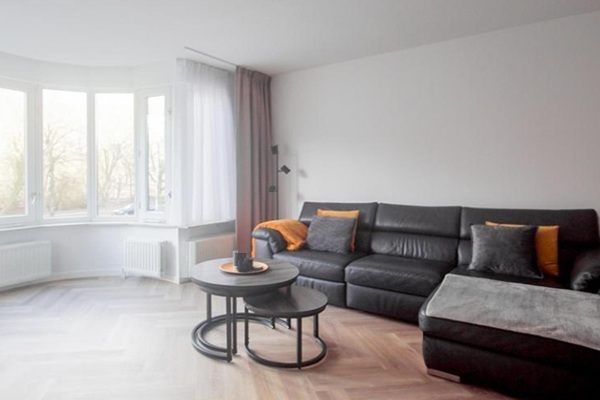 Indeling: Entree van het gebouw op de begane grond, entree van de woning bevindt zich op de eerste verdieping. De hal geeft toegang tot alle vertrekken. De ruime woon- en eetkamer bevat veel licht en heeft unieke ronde erker met wijds uitzicht over de Bezuidenhoutseweg en het Haagse Bos. De moderne keuken bevat alle benodigde inbouwapparatuur en geeft toegang aan de bijkeuken met aansluiting voor was- en droogmachine. De hal geeft verder toegang aan twee ruime slaapkamers waarvan de hoofdslaapkamer ook een balkon bevat op het zuidoosten met uitzicht over de wijk. De verzorgde badkamer heeft een ruime regendouche en een grote wastafel. De toilet bevindt zich separaat.