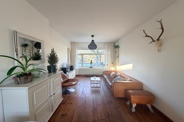 Je komt het appartement binnen op de 1e verdieping waar de L-vormige woonkamer is gelegen. Aan de achterzijde bevindt zich de open keuken die is voorzien een koelkast, vaatwasser, fornuis en afzuigkap. Vanuit hier heb je ook toegang tot een riant balkon gelegen op het zuiden. Via de hal, die toegang biedt tot een werkkamer en een separaat toilet bereik je de trap die naar de tweede verdieping leidt. Op de 2e verdieping zijn twee slaapkamers gelegen, en een derde kamer, die bijvoorbeeld dienst kan doen als inloop kast. Op deze verdieping bevindt zich ook de recent gerenoveerde badkamer die beschikt over bad en inloopdouche. Vanuit een van de slaapkamers bereik je de ruime zolder, waar de tevens de wasmachine (aansluiting) te vinden is. Kortom een prachtig appartement op een unieke en rustige locatie, maar toch in de nabijheid van de levendige Amsterdamsestraatweg. - Geschikt voor werkende persoon of stel; - Niet geschikt voor woningdelers;