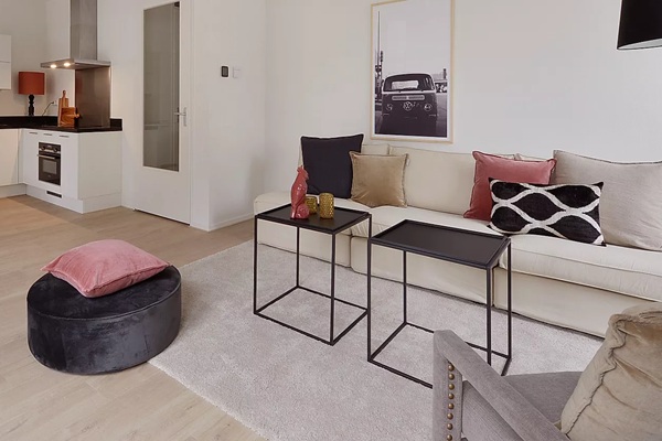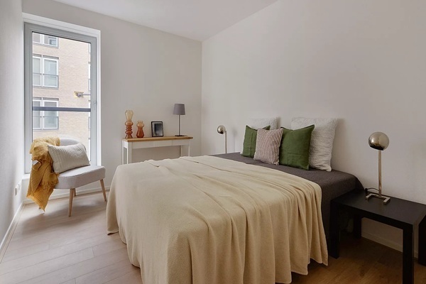 De woonkamer vormt een ruime en lichte leefruimte met voldoende plaats voor een zit- en eethoek. Vanuit de woonkamer is het balkon toegankelijk, wat zorgt voor een prettige verbinding tussen binnen en buiten. De open keuken sluit aan op de woonkamer en is luxe uitgevoerd. De keuken is voorzien van diverse inbouwapparatuur, waaronder een combimagnetron, inductiekookplaat, koelkast met vriesvak en vaatwasser. Het appartement beschikt over twee slaapkamers, geschikt als hoofdslaapkamer en bijvoorbeeld een werk-, logeer- of kinderkamer. De moderne badkamer is uitgerust met een ruime inloopdouche en wastafel. Daarnaast bevindt zich in de hal een separaat toilet. In het appartement is een aparte wasruimte aanwezig met aansluitingen voor wasmachine en droger. Het ruime balkon van circa 15 m² biedt een fijne buitenruimte waar u comfortabel kunt zitten en ontspannen.