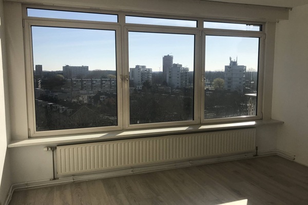 Indeling: gezamenlijke entree met bellentableau begane grond, trappenhuis en lift naar de 5e etage, entree appartement. Vanuit de hal zijn de badkamer en eet/woonkamer te bereiken. De keuken ligt naast de eet/woonkamer en is voorzien van een kookplaat, afzuigkap, gootsteen met kraan, inbouwkoelkast en magnetron. De eet/woonkamer geeft toegang aan het balkon en de slaapkamer. De wasmachineaansluiting bevindt zich in de bergruimte. De badkamer is voorzien van een douche, toilet en wastafel. De woning is voorzien van een laminaatvloer en beschikt over een balkon met adembenemend uitzicht!