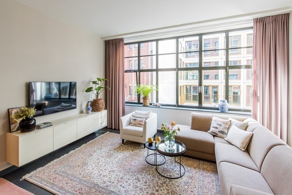 Indeling Binnenkomst via de prachtige centraal afgesloten entree voorzien van een trap en twee liften. Eigen entree op de eerste etage. Binnenkomst in de ruime hal voorzien van de meterkast, garderoberuimte, bergkast voorzien van wasmachine en droger en het toilet. De zeer ruime woonkamer is voorzien van grote raampartijen en een open keuken. De keuken is voorzien van een kookeiland voorzien van kookplaat, afzuigkap, koelkast met vriezer, combi oven, Quooker en vaatwasser. De slaapkamer is heerlijk ruim, en voorzien van een tweepersoonsbed en een fijne, grote kledingkast. De volledig betegelde badkamer is voorzien van een wastafel met meubel en spiegel en een fijne inloopdouche. Het appartement is compleet nieuw ingericht met design meubelen van o.a. Designers Guild en Notre Monde. De muurverf is van Farrow&Ball en het behang is van Arte en Elitis. Het gehele appartement is voorzien van vloer koeling en vloer verwarming. Bewoning is mogelijk voor maximaal een stel, studenten zijn helaas niet toegestaan