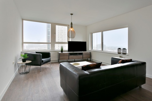 Indeling Begane grond Representatieve en royale entree met stijlvolle afwerking. Het gebouw beschikt over toegangsbeveiliging via videofoon, een nette ontvangsthal en directe toegang tot de liften, het trappenhuis en de afgesloten parkeergarage 16e verdieping Bij binnenkomst treft u een ruime entree met garderobe en separaat toilet. De royale woonkamer is smaakvol ingericht met een comfortabele zithoek en een ruime eethoek. Dankzij de grote raampartijen geniet u hier van een indrukwekkend uitzicht over Eindhoven. De luxe halfopen keuken is volledig uitgerust met hoogwaardige inbouwapparatuur, waaronder een vaatwasser, oven-grill-magnetron, gaskookplaat en een koel-vriescombinatie. Aangrenzend bevindt zich een praktische berging met wasmachine en droger. Het appartement beschikt over twee slaapkamers Een ruime hoofdslaapkamer met een queen-size tweepersoonsbe<br een Tweede slaapkamer met een comfortabel eenpersoonsbed De luxe badkamer is compleet uitgevoerd met een ligbad, een separate douchecabine en vaste wastafels