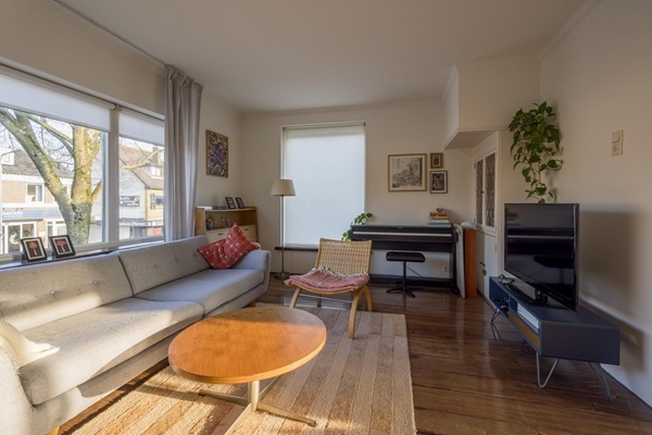 Indeling Begane grond: Entree met hal, meterkast en trapopgang naar de eerste verdieping. Eerste verdieping: Op deze etage bevindt zich een ruime en lichte woonkamer (ca. 32 m²) met een sfeervolle houten vloer en uitzicht over de Leusderweg. Via de woonkamer heeft u toegang tot de slaapkamer, die eveneens is voorzien van een houten vloer. Een schuifpui in de slaapkamer leidt naar het zonnige dakterras (ca. 8 m²) op het zuiden, waar u heerlijk kunt genieten van de buitenlucht. De keuken is voorzien van een betegelde vloer en diverse inbouwapparatuur, waaronder een 4-pits gasstel en een koelkast met vriesvak. Vanuit de keuken heeft u toegang tot de gedeelde badkamer met een douche en wastafel. – Geen woningdelers, studenten of vrienden;