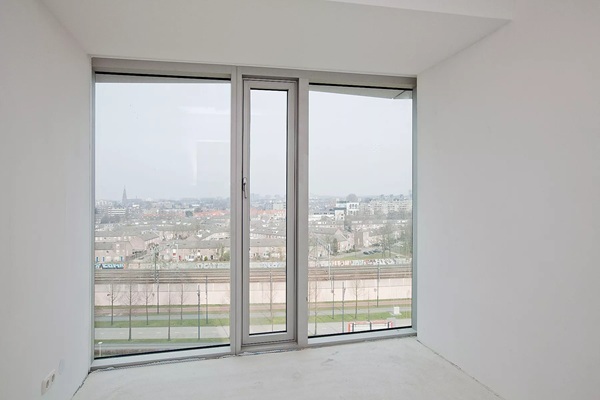 Het appartement heeft een ruime en vooral lichte woonkamer met open keuken. De keuken is voorzien van een keramische kookplaat met afzuigkap, vaatwasser, koel-vriescombinatie en een combi-magnetron. Een grote schuifpui geeft toegang tot het balkon. De badkamer is voorzien van een inloopdouche, ligbad en wastafel. Het toilet is separaat gelegen. De slaapkamers zijn 12 en 9 m2. Er is een inpandige berging alwaar zich de WKO-installatie bevindt en een berging met de aansluiting voor de wasmachine. Het appartement beschikt over een parkeerplaats in de ondergrondse parkeergarage.