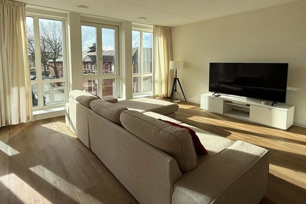 Indeling: Centrale entree met postvakken, lift en trappenhuis. 1e verdieping: Entree van het appartement met een hal, gastentoilet met fonteintje, inpandige bergruimte met warmtepomp, en toegang tot de woonkamer. Ruime woonkamer met grote ramen, waardoor het zeer licht en ruimtelijk is. De woonkamer beschikt over een luxe keuken met alle benodigde apparatuur, zoals koelkast, diepvries, vaatwasser, oven, magnetron, inductiekookplaat en afzuigkap. Ruime slaapkamer met voldoende ruimte voor een tweepersoonsbed en kledingkast. Moderne badkamer met wastafel, meubel en douche. Via een deur heeft men toegang tot het royale balkon aan de achterzijde