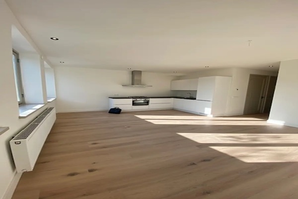 Entree in de hal. Vanuit de hal toegang tot alle vertrekken, te weten: de woon/eetkamer met keuken, 2 slaapkamers aan de rustige achterzijde waarvan één met balkon, badkamer met riante douche, toilet en wastafel en designradiator, bergruimte voor de wasmachine en de CV. Aan de voorzijde bevindt zich de woon/eetkamer met open keuken. De keuken heeft voldoende kastruimte en diverse inbouwapparatuur (o. a. koel/vriescombinatie, 4-pits gasfornuis, vaatwasser en magnetron/oven).