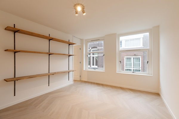 Indeling De woonkamer en de tweede slaapkamer zijn gelegen aan de straatzijde. De keuken is uitgerust met een Bosch inductiekookplaat, oven en composiet werkblad. De masterbedroom aan de achterzijde heeft openslaande deuren naar het zuidgerichte balkon met uitzicht op de gracht. Beide slaapkamers worden voorzien van vloer-tot-plafond verduisterende gordijnen in crème. De woonkamer krijgt houten jalouzieën. Verder is er een badkamer, separaat toilet en een eigen vliering van 6 m², geschikt als opbergruimte of thuiswerkplek. Geschikt voor een stel of maximaal 2 bewoners (geen studenten).