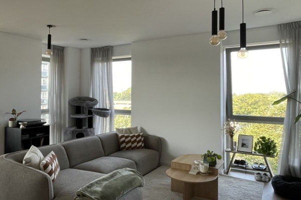Dit riante 3-kamer appartement bevindt zich op de 2e etage. De L-vormige witte keuken is voorzien van koel/vriescombinatie, oven met magnetronfunctie, inductie kookplaat en een vaatwasser. De moderne en comfortabele badkamer is voorzien van een inloopdouche en een dubbele wastafel met spiegel. Het zwevende toilet met fontein bevindt zich in een aparte ruimte. Het appartement heeft 2 slaapkamers en een groot balkon die via de riante woonkamer te betreden is.