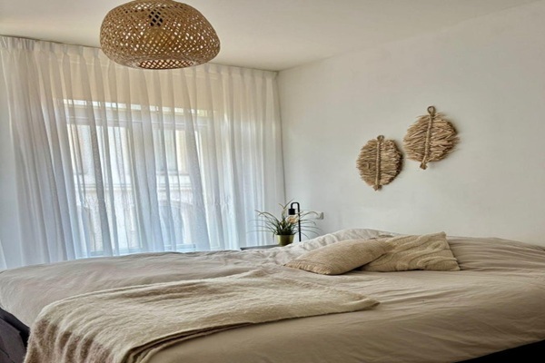 Het woongedeelte heeft twee openslaande deuren naar het privéterras van 100 m2. Het appartement beschikt over 2 slaapkamers met een afmeting van respectievelijk 14m2 en 12m2. De gehele linkerzijde van het appartement is een kastruimte!!!! Alle ramen zijn voorzien van driedubbel glas, vloerverwarming, ventilatiebalans Op deze plek is tevens een schuur gebouwd waar u uw fietsen kunt plaatsen. Studenten hoeven niet te solliciteren