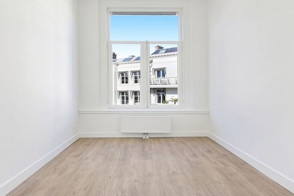 Indeling: Open portiek, trap naar 1e etage, entree woning; hal; lichte woonkamer voorzien van lamin...
