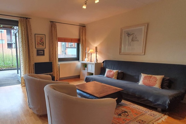 Het appartement beschikt over een lichte woonkamer met een strak afgewerkte, volledig ingerichte mod...