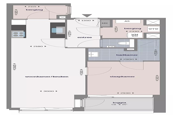 Indeling appartement Via de centrale entree met liftinstallatie bereik je het appartement. Binnenkom...