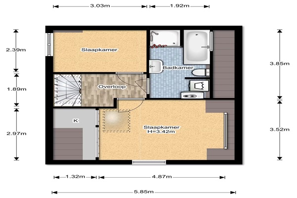 Indeling: Gesloten portiek met bellentableau, trap naar de eerste etage. Ruime hal biedt toegang tot...