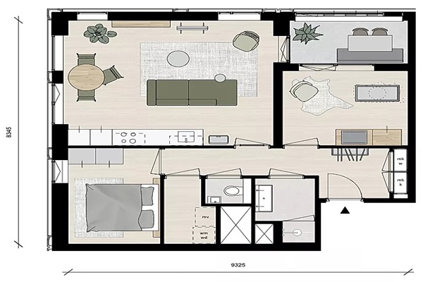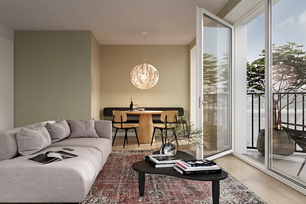 De woonkamer voelt ruim en open, met grote ramen die het daglicht volop binnenlaten. De open keuken sluit hier moeiteloos op aan en vormt het gezellige middelpunt van de woning – een fijne plek om iets snel te bereiden of juist uitgebreid te koken tijdens een ontspannen avond. Grenzend aan de woonkamer vind je de loggia: een beschut en knus hoekje waar je 's ochtends de dag begint met een kop koffie in de zon. ’s Avonds is het je eigen rustige uitkijkpunt over de stad – een glas wijn in de hand, even weg van de drukte. De slaapkamer is sfeervol en biedt voldoende ruimte voor een comfortabel bed en een kledingkast. Ook is er plek voor een compacte werkplek – ideaal als je (deels) thuiswerkt. De badkamer is strak afgewerkt en voorzien van een moderne inloopdouche en wastafel. Het aparte toilet is een praktische extra. Het appartement is modern en met zorg afgewerkt. Je hoeft alleen nog maar je meubels neer te zetten