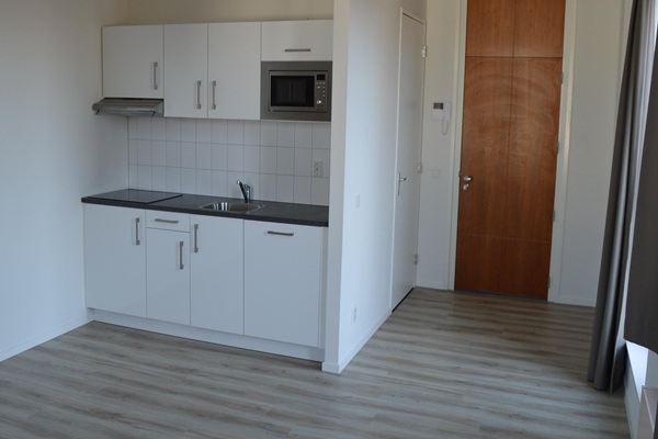 Met een slimme indeling, eigen balkon, badkamer en keuken is het een fijne plek om te wonen. De keuken is praktisch en volledig uitgerust met een vaatwasser, koelkast met vriesvak, elektrische kookplaat, afzuigkap, magnetron en een stijlvolle hoogglans witte keuken. De led spotjes zorgen voor prettige verlichting. De badkamer is compleet en modern betegeld, voorzien van een stortdouche en handdouche achter een luxe douchewand. Er is een zwevend toilet, een zwarte hoogglans wastafelkast met mengkraan en een handdoekradiator. Ook heb je hier vloerverwarming en aansluitingen voor een wasmachine en droger. De gehele studio is netjes afgewerkt met een luxe kunststof vloer en uitgerust met elektrische zonwering en gordijnen. Je komt binnen via een video-intercomsysteem wat zorgt voor extra veiligheid en gemak. De studio beschikt over draaikiepramen en een massief hardhouten voordeur. Het gebouw biedt een lift, een gedeeld dakterras op de 4e etage, en een marmeren trappenhuis met designverlichting. Er is een internetaansluiting aanwezig.