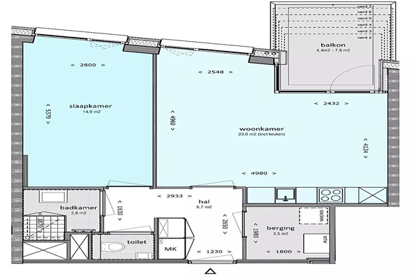 Indeling Dit moderne tweekamerappartement van circa 54 m2 is precies groot genoeg! Niet te groot, en niet te klein! Ben jij een echte thuiskok? Dan zit je goed in The Roofs. De leefkeuken wordt namelijk zeer compleet opgeleverd met al de benodigde inbouwapparatuur: een inductiekookplaat met afzuigkap, de combimagnetron, een vaatwasser en koel-vriescombinatie. Zo kook je elke dag de sterren van de hemel. De badkamer is mooi afgewerkt inclusief: wastafel met een spiegel erboven, een ruime inloopdouche en het appartement beschikt ook over een separaat toilet. In de inpandige berging is de aansluiting voor de wasmachine aanwezig en is tevens groot genoeg voor opslag van je spullen! Het ruime balkon ligt op het zuidwesten. Met het uitzicht vanaf de 10e verdieping kun je heerlijk genieten op je eigen balkon. Indien beschikbaar is er een mogelijkheid om in de parkeerkelder een parkeerplaats te huren.