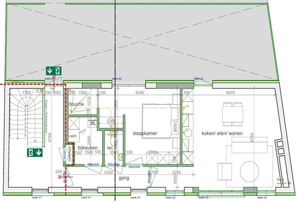 Indeling: Begane grond: Entree/hal/gang staat in verbinding met de berging (aansluiting voor wasmachine en droger), separate toilet, slaapkamer met badkamer ensuite en woonkamer met keuken. De keuken is voorzien van diverse inbouwapparatuur zoals inductiekookplaat, afzuigkap, vaatwasser, oven en koel-vriescombinatie. De badkamer is uitgerust met inloopdouche, wastafel met meubel en vloerverwarming.